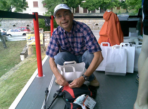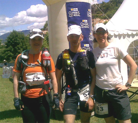 Pastaparty am Abend vor dem Start wurde bei einer schmackhaften Lasagne und französischem Rotwein noch einmal die Absprache zur gegenseitigen Unterstützung bekräftigt. Um 04.00 Uhr am Samstagmorgen war ein nochmaliges Briefing der Starter vorgesehen. Bis spätestens 04.30 Uhr hatten sich alle Teilnehmer mit hochkonzentrierten Gesichtern eingefunden und um 05.00 Uhr wurde das Signal zum Start gegeben. In zunächst ruhigem Tempo ging es durch den noch nächtlichen Ort. Doch schon am Ortsrand musste sofort ein sehr steiler Anstieg gemeistert werden. Nach ca. 30 Minuten bildete sich auf einem schmalen Pfad eine längere Schlange und es ging nur noch im Schritttempo voran. Stirnleuchten erhellten den Weg. Rolf Wäsche hatte schon gleich zu Anfang Probleme mit der Funktionsfähigkeit seiner Lampe, was zügiges Vorankommen behinderte, doch das Morgengrauen machte sie bald überflüssig.