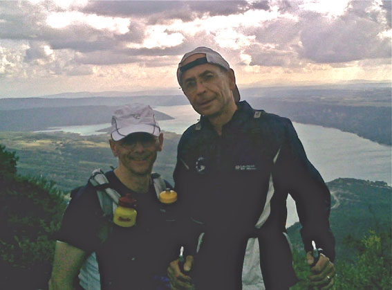 Wo der Fluss Verdon in den See einmündet, überquerten die Läufer eine Brücke. Kanus und Touristen boten einen entspannten Anblick, doch für die Athleten tickte die Uhr unbarmherzig weiter. Nach dieser kurzen Idylle führte der Pfad wieder steil bergauf. Auf dem Weg zum nächsten Verpflegungspunkt entschied sich Rolf W. nach nüchterner Analyse seines Kräftehaushaltes dafür, seinen Lauf noch vor Einbruch der Nacht zu beenden, um kein unnötiges Risiko für sich selbst einzugehen oder zur Last für seinen begleitenden Laufkameraden oder die inzwischen aufgetauchten Lumpensammler zu werden.